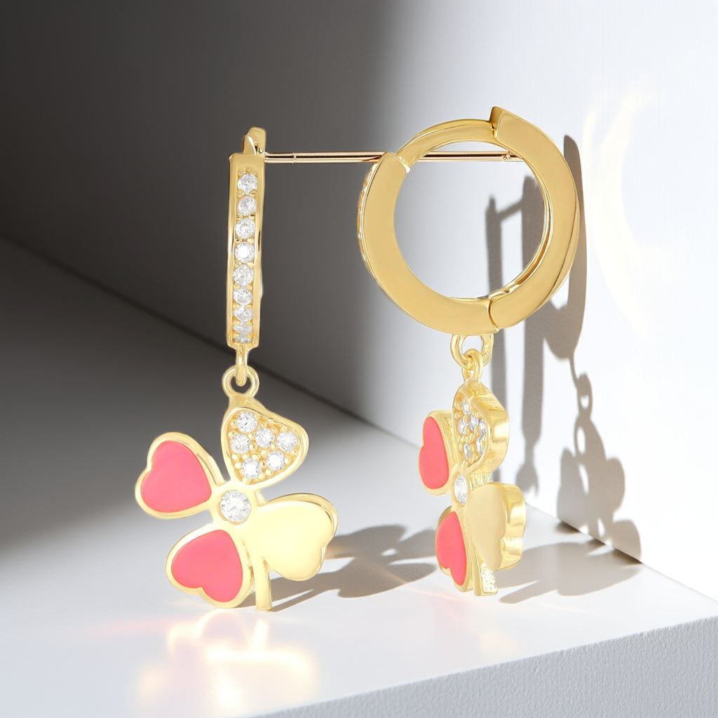Crafted from high-quality 925 sterling silver, these exquisite earrings showcase a delicate pink clover design embellished with brilliant cubic zirconia stones. Their refined craftsmanship and subtle sparkle make them an ideal accessory for adding a touch of elegance to both everyday wear and special occasions. Perfect for those who appreciate timeless sophistication and understated beauty.