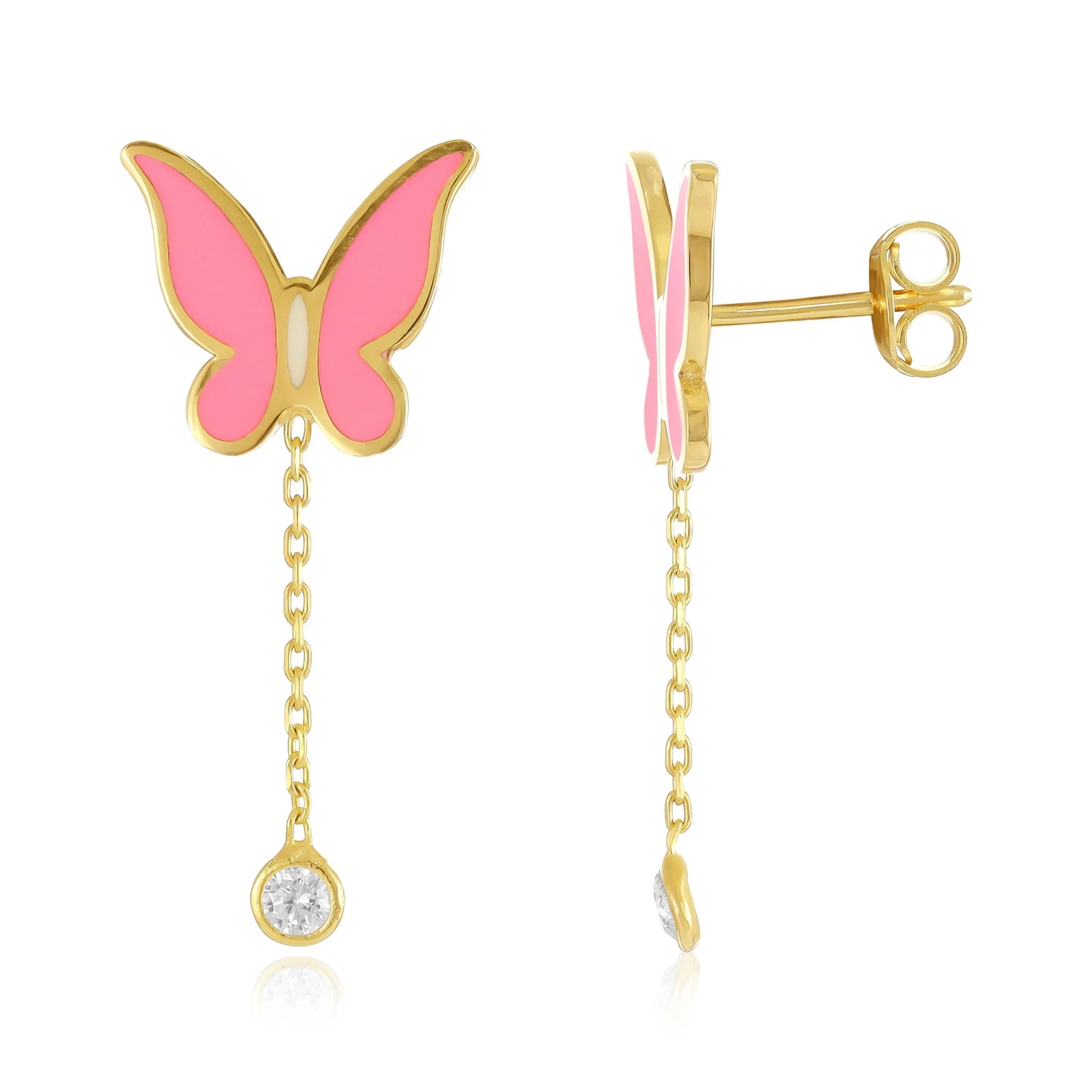 Crafted from high-quality 925 sterling silver, these exquisite earrings showcase a delicate pink butterfly design embellished with brilliant cubic zirconia stones. Their refined craftsmanship and subtle sparkle make them an ideal accessory for adding a touch of elegance to both everyday wear and special occasions. Perfect for those who appreciate timeless sophistication and understated beauty.